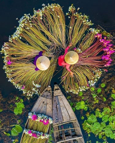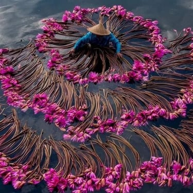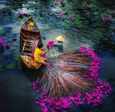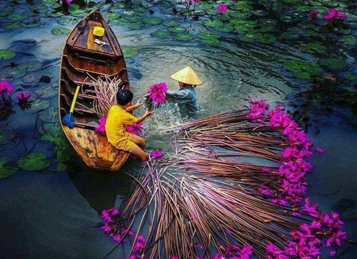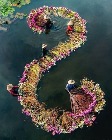 A colheita dos lírios d'água no Vietnã é uma atividade profundamente enraizada na tradição e cultura local. O processo é uma prova da habilidade e da dedicação dos agricultores vietnamitas, que seguiram práticas passadas de geração em geração. Esta atividade sazonal ocorre principalmente durante os meses de fim de verão e início do outono, quando as flores estão em plena floração e podem ser colhidas em sua máxima beleza.