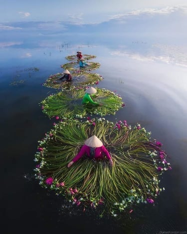 Beleza e Tradição na Colheita dos Lírios d' Água - Vietnã