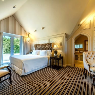 Primeiro, a exclusividade e o luxo oferecidos pelo hotel garantem uma estadia única e memorável neste local com arquitetura inspirada em castelos escoceses.